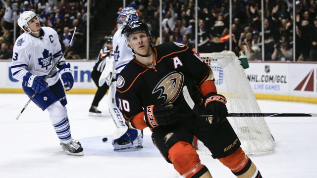 His second goal was a breakaway set up by a long, beautiful backhand pass from captain Ryan Getzlaf, who had two assists in Anaheim’s first win over Toronto in seven tries.